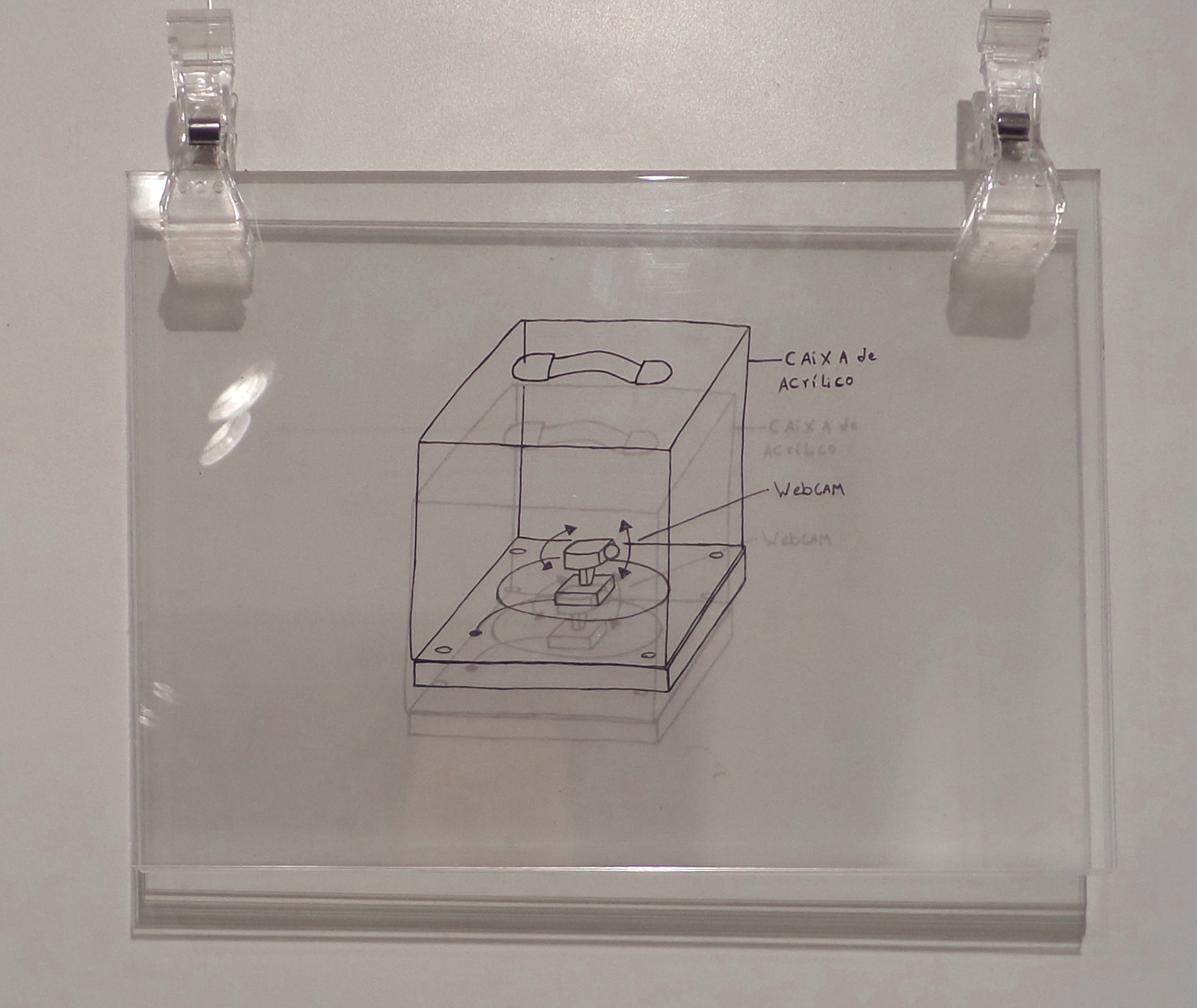 Os Esquemas de montagem consistem em desenhos feitos em camadas de acrílico, com detalhes de projetos robóticos, uma extensão do caderno de ideias onde podemos ter noção de como são as etapas de montagem das máquinas. Cada esquema de montagem é composto por 6 camadas onde temos a possibilidade de manuseio do público.
